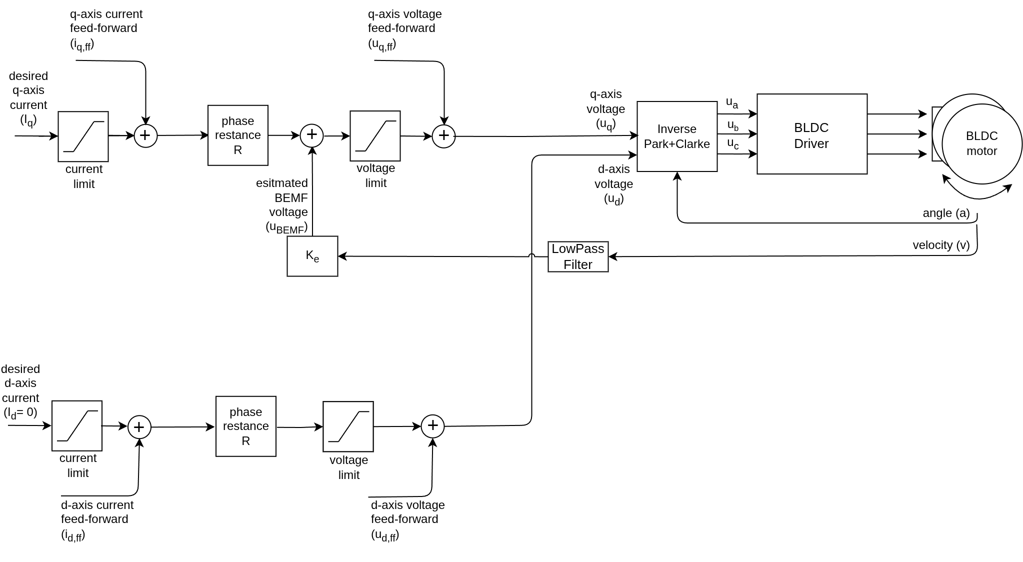 \[u_q = R \cdot i_q + U_{bemf}\]Solving for current: