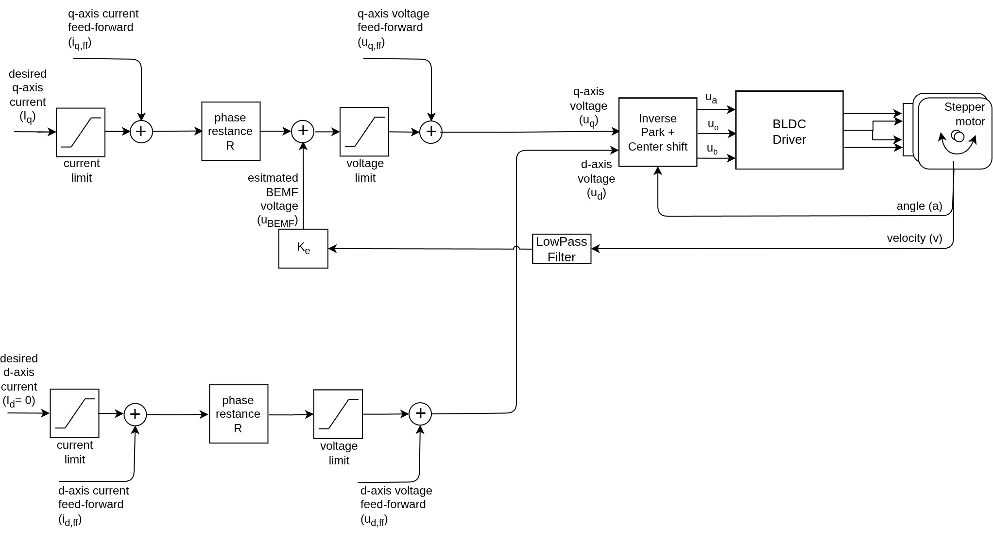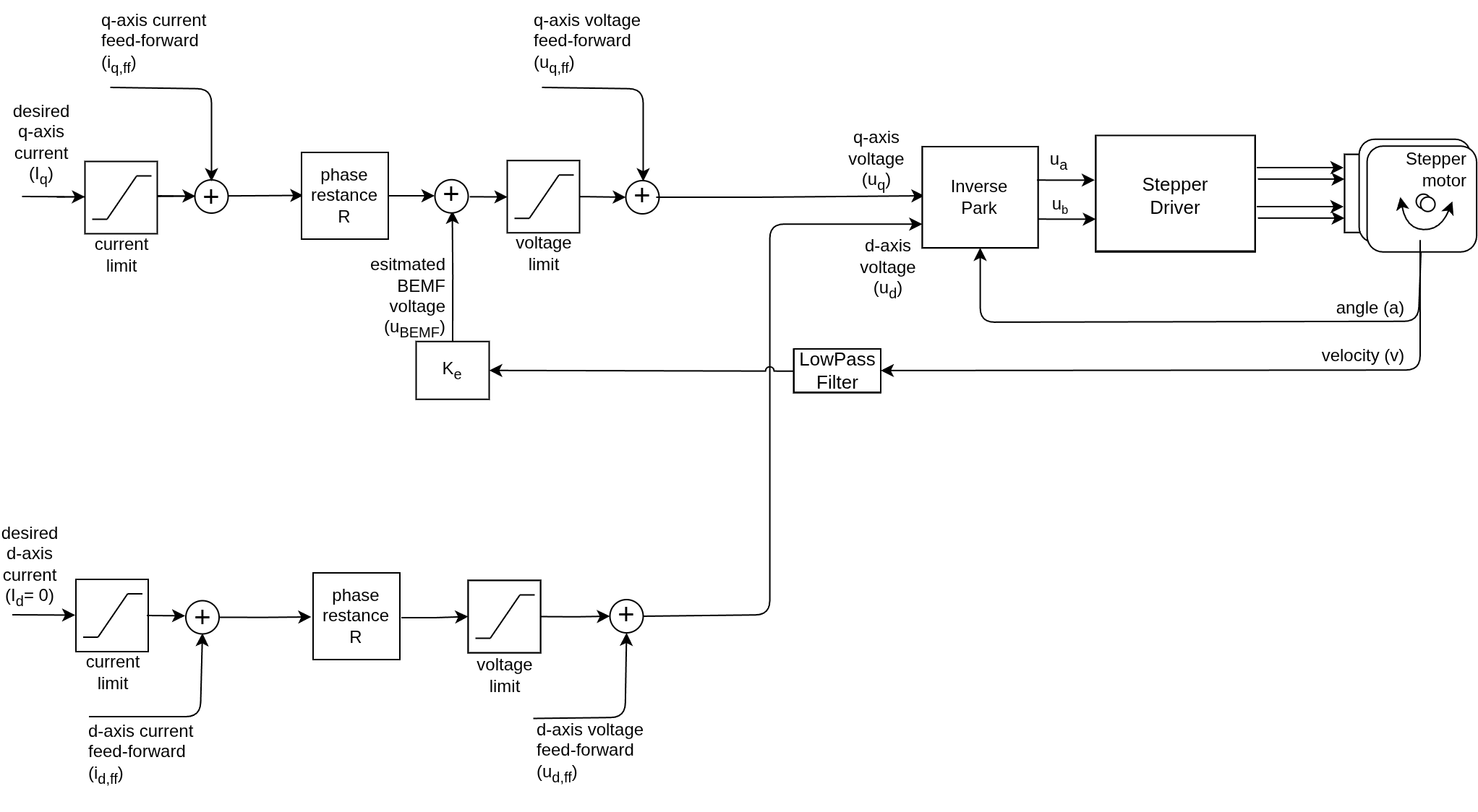 \[u_q = R \cdot i_q + U_{bemf}\]Substituting the back-EMF model: